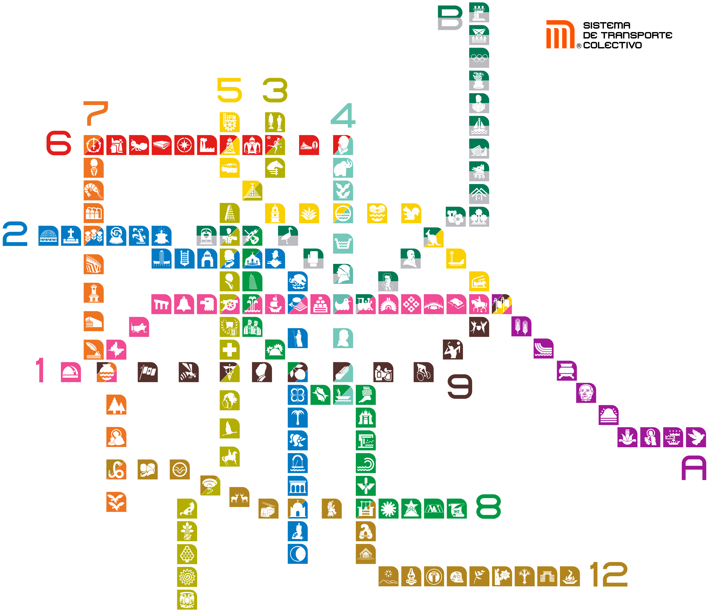 The design was made by Lance Wyman, and soon he'd become key for the image of the Metro system that was being created during that time. A highlight of the design for the 1968 Olympics was the use of recognizable icons for each sport and activity in general. This would serve as a point of reference for the design of Metro stations.